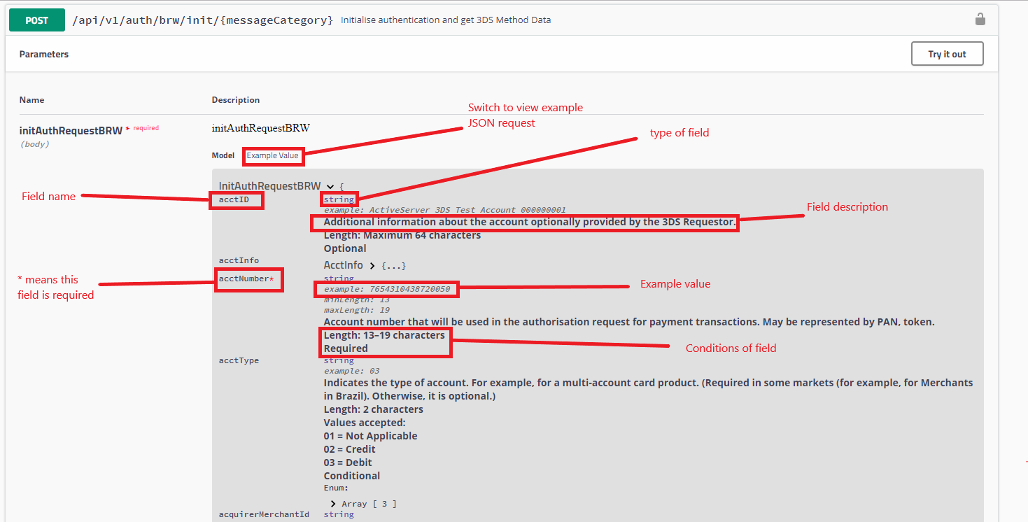 GPaymentsのActiveServer APIのドキュメントには、各APIの許可されるエンドポイントおよびリクエストHTTPメソッドが含まれています。たとえば、/api/v1/auth/3riはエンドポイントURLであり、許可されるHTTPメソッドはPOSTです。