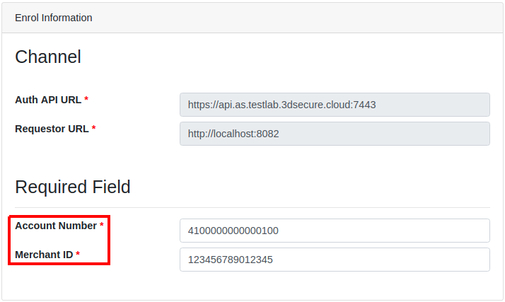 カード番号とマーチャントIDのみがEnrolテストでは必要です。