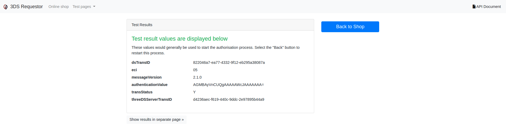 このセクションでは、3DSリクエスターデモプロジェクトのすべての機能を紹介します。弊社の3DSリクエスターにアクセスするには: